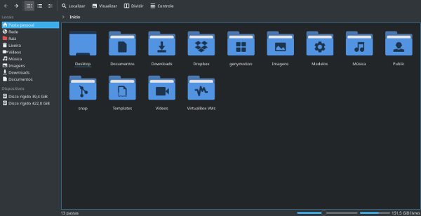 Os emblemas das pastas é ligado ao tema de ícones e ao XDG para as pastas padrão do sistema.