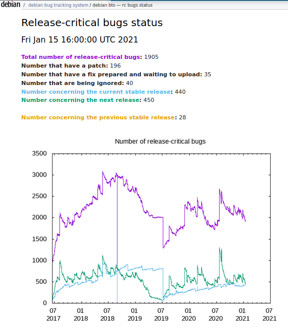 - A partir de 12-03-2021, pacotes-chave e pacotes sem autopkgtest serão tratados como no Full Freeze, enquanto pacotes não-chave com autopkgtest serão tratados como durante o Soft Freeze.