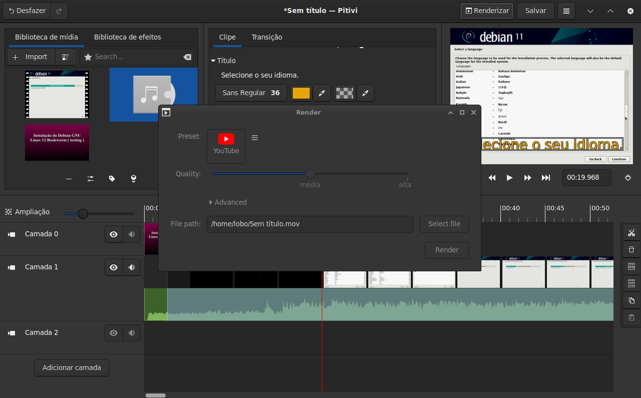 Para a edição iremos usar o Pitivi, instale com o comando para a sua distribuição.